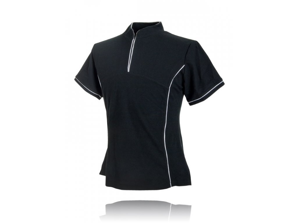 Toto triko Back on Track je vynikající volbou při ztuhlosti ramen a zad. Vkusný a moderní střih je vhodný pro každodenní nošení. Na rozdíl od normálního trika, má triko Back on Track více vypasovaný přiléhavější střih . Je opatřeno lehkým límečkem a zipem na krku. Bílé tričko má černé lemovky a stehy a černé tričko naopak bílé.